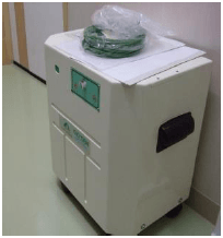 空気から酸素のみを濃縮して供給できる機械です。心臓や呼吸状態の悪い子に使用します。